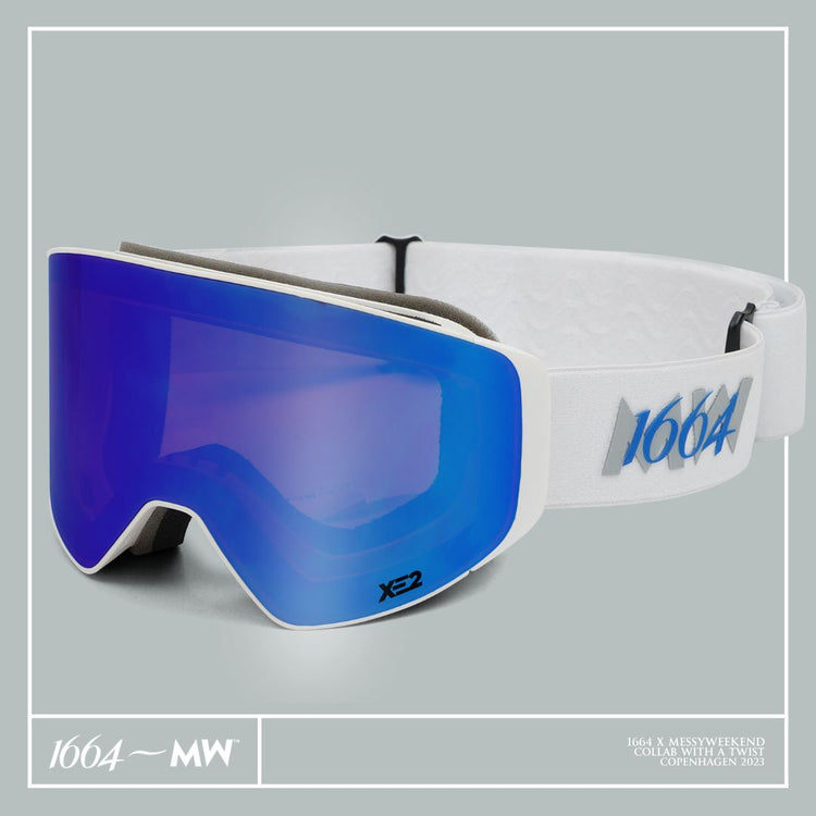 Avec notre verre XE2 à contraste élevé avec le bleu iconique de 1664 et la sangle blanche arctique avec logo en silicone.